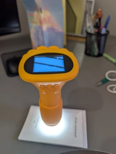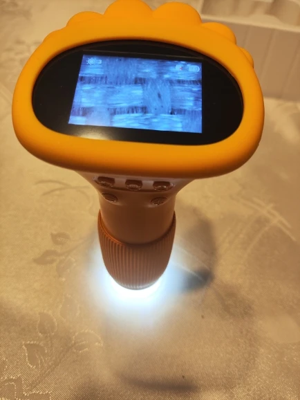 Super microscope, zoom très précis sur les objets :) Sur les photos, par exemple, du cuir, un pull et un pantalon. La possibilité d'enregistrer les photos sur une carte externe est un avantage supplémentaire. Fortement recommandé, parfait comme cadeau pour un enfant de six ans, bien qu'un adulte puisse également le trouver intéressant :)